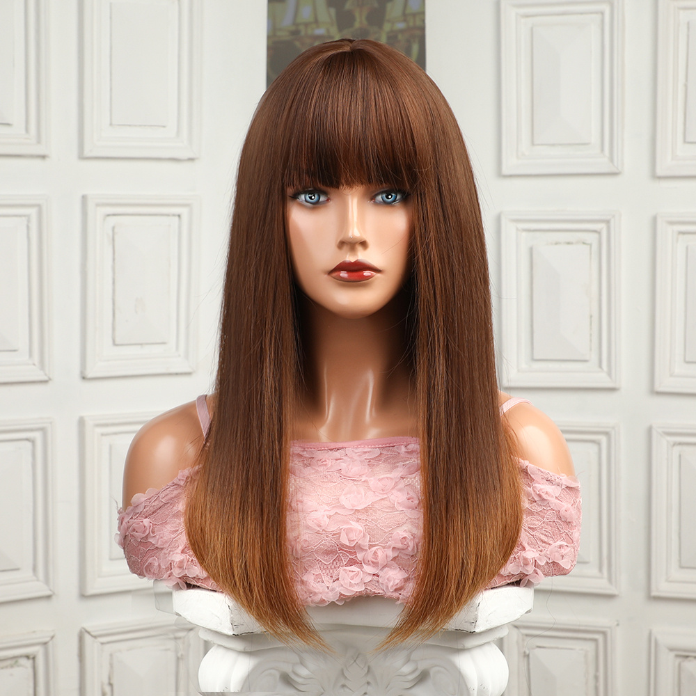 20 Inches Long Straight Brown Hair With Bangs Natural Fluffy Suitable For Women Daily Party Play Beauty Personal Care Temu